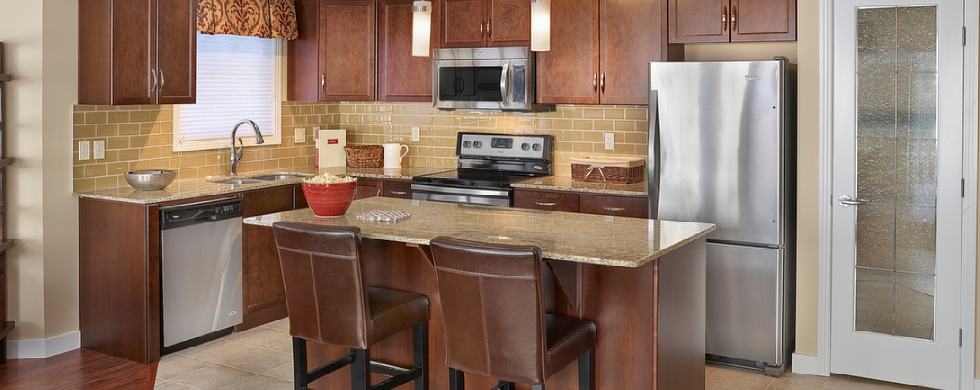 Venetian Gold Granite kitchen countertops with ceramic subway tile backsplash